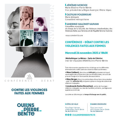 Dernière minute : 26 novembre Journée de lutte contre les violences faites aux femmes, la ville d'Oullins propose ...